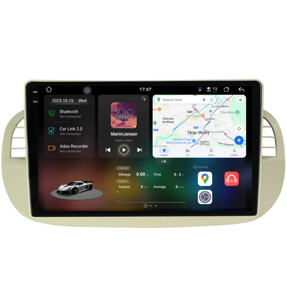 NavStore Navigatie Dedicata Fiat 500 (2007-2015), 2K, 12Gb Ram, 256Gb Stocare, Carplay