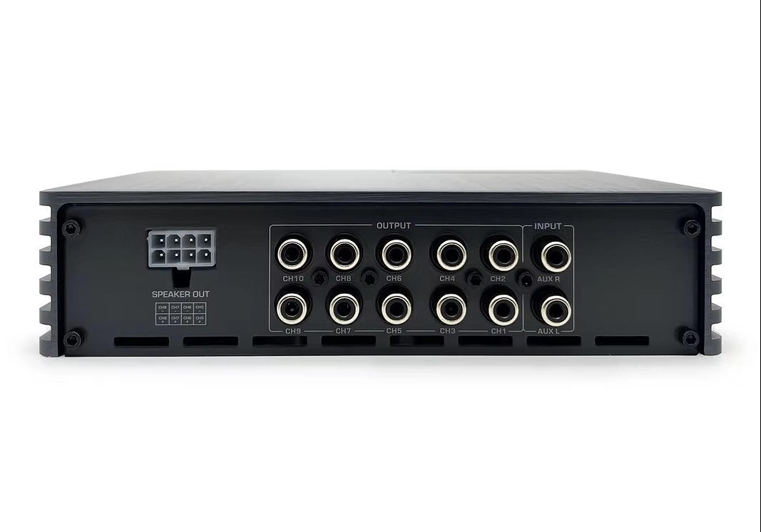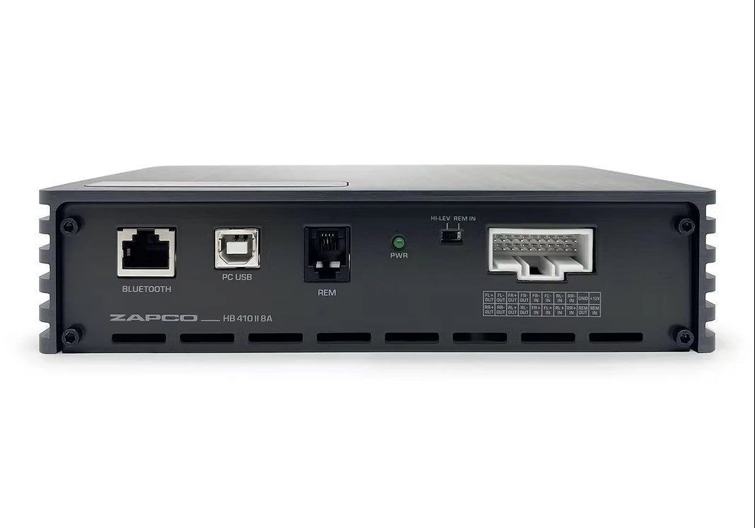 HB 410 II 8A este un amplificator DSP cu 10 canale, echipat cu egalizator pe 31 de benzi si amplificator integrat pe 8 canale de tip Class-AB. Dispune de 4 intrari High-Level, 10 iesiri RCA si 2 intrari RCA suplimentare, oferind conectivitate extinsa si flexibila.