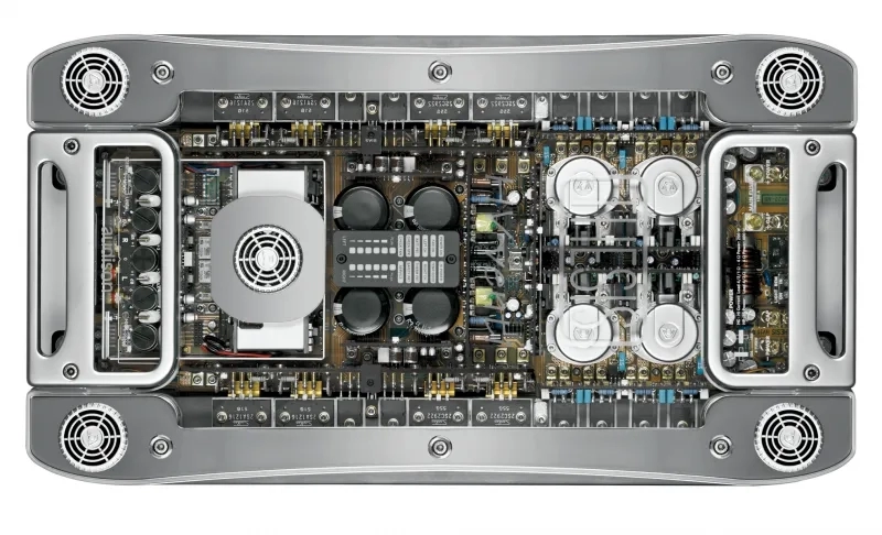Patru surse de alimentare Synchro-PWM permit o reactie rapida a curentului tranzitoriu si crearea unei configuratii Dual Mono.