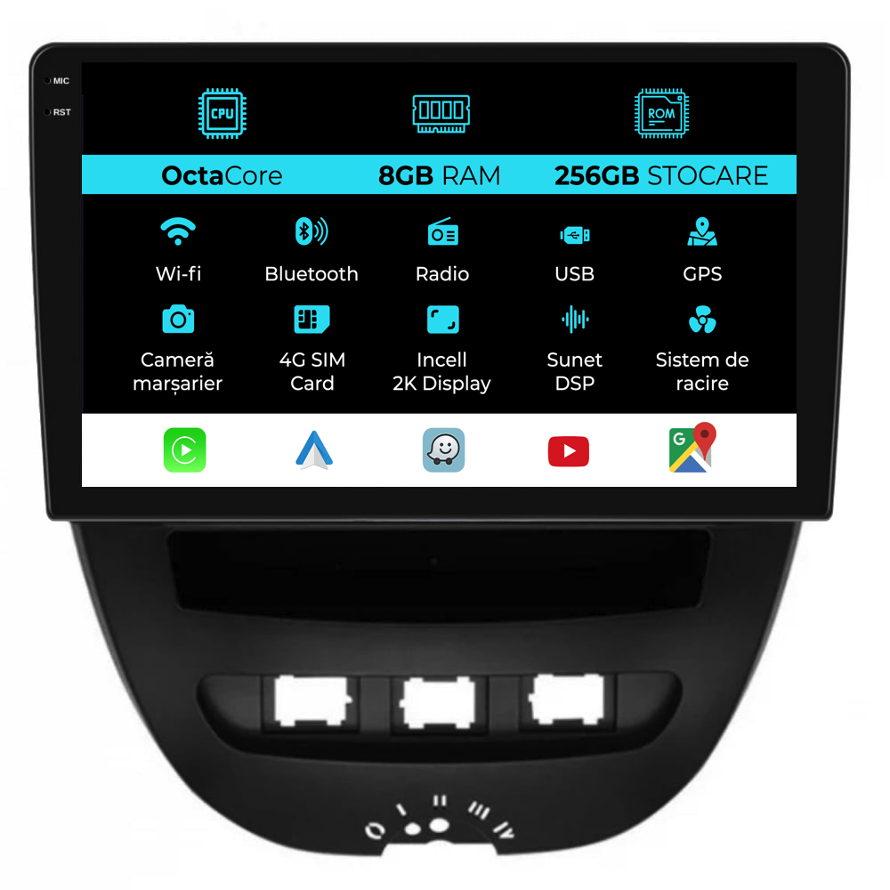 NavStore Navigatie Dedicata Peugeot 107/Citroen C1/Toyota Aygo (2005-2015),2K, 8Gb Ram, 256Gb Stocare, Carplay + CADOU