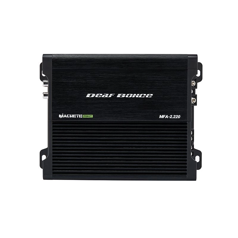 Amplificatorul Deaf Bonce Machete MFA-2.220 este un amplificator de clasa D extrem de puternic, conceput pentru a livra un sunet clar si de înalta calitate în sisteme audio auto. Cu o putere RMS de 350W x 2 la 2 Ohmi si 220W x 2 la 4 Ohmi, acest amplificator poate furniza o performanta exceptionala. În modul bridge, MFA-2.220 poate atinge o putere de 700W x 1, fiind ideal pentru aplicatii care necesita un sunet puternic si clar.