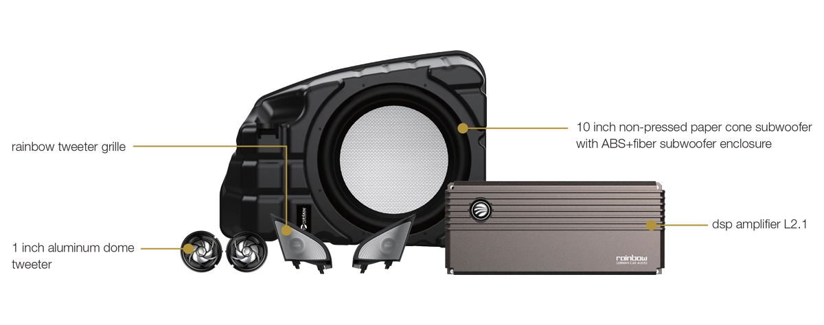 Setul Rainbow TSLMD3100FS E este dedicat special pentru Tesla Model 3, oferind un pachet excelent strategizat cu tweetere si subwoofer, completat de amplificator DSP L2.1, integrându-se perfect pe locatiile OEM fara adaptari. Cu sensibilitate de 86 dB pentru tweeter si 83 dB pentru subwoofer, impedanta de 4 Ohm (tweeter) si 2+2 Ohm (subwoofer), acest sistem reda un sunet clar, detaliat si un bas impresionant între 33 Hz–600 Hz. Instalare plugandplay, fara vibratii nedorite – experienta audio Tesla la nivel european.