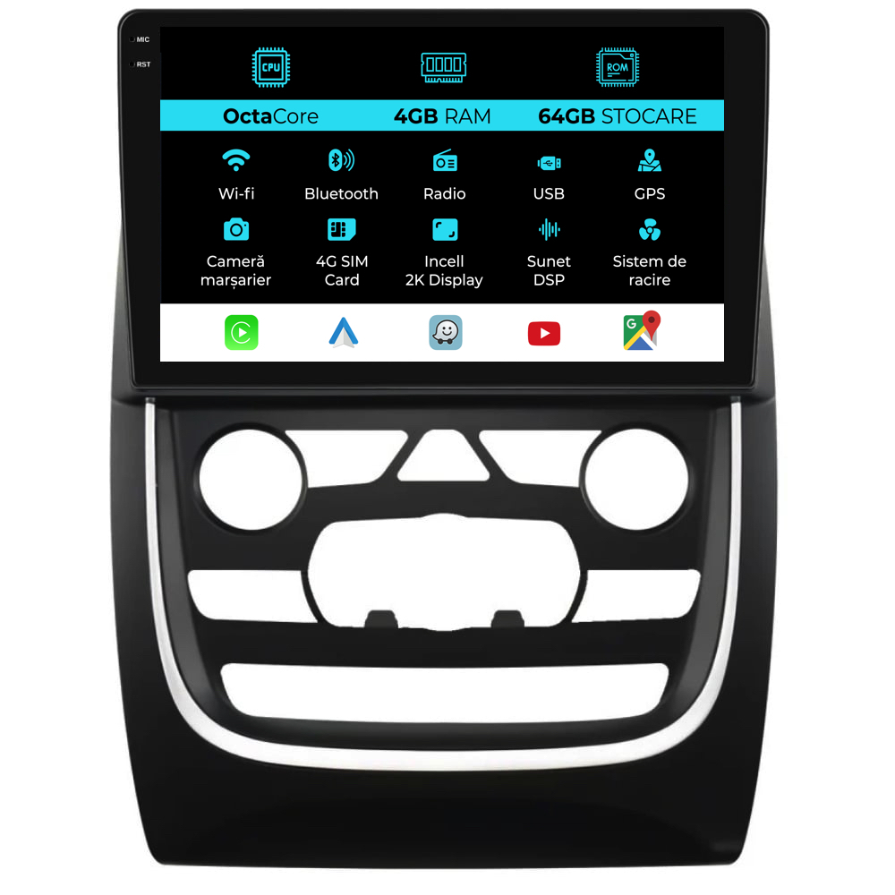 Conectivitate rețea: 4G, Hotspot telefon, router extern, dongle 3G sau 4G, CarPlay/Android Auto