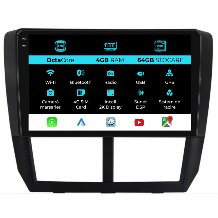 NavStore Navigatie Dedicata Subaru Forester (2008-2013), 2K, 4Gb Ram, 64Gb Stocare, Carplay