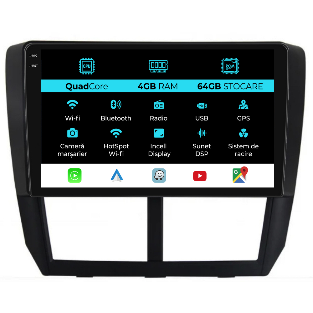 Navigatie Dedicata Subaru Forester (2008-2013),QuadCore, 9Inch, 4Gb Ram, 64Gb Stocare, Carplay