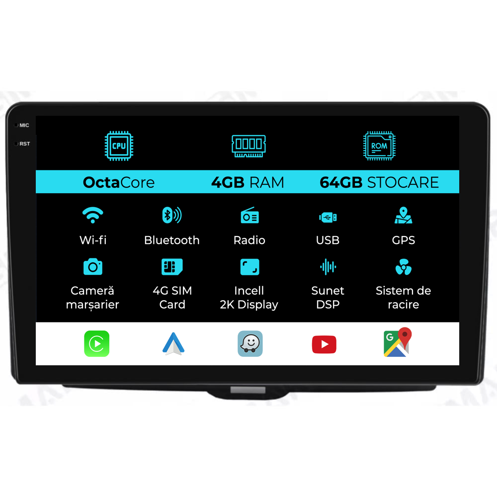 Conectivitate rețea: | 4G, Hotspot telefon, router extern, dongle 3G sau 4G, CarPlay/Android Auto |