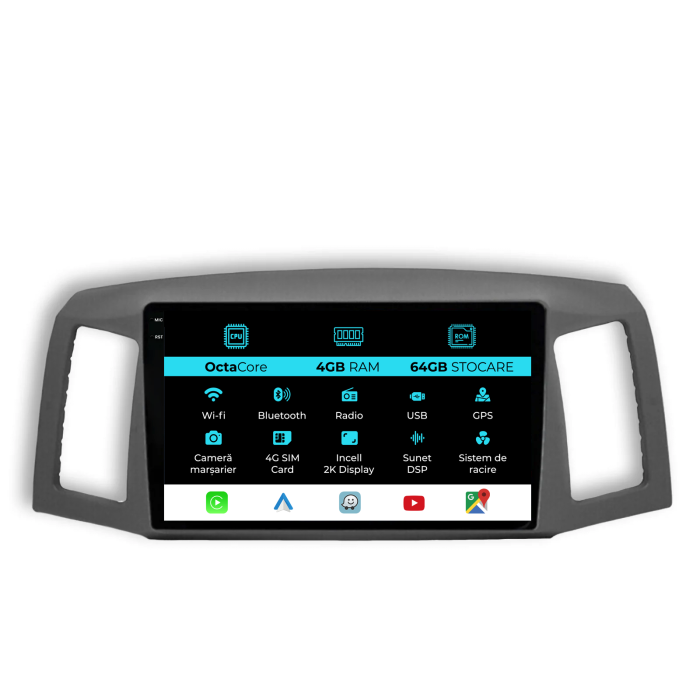 | Conectivitate rețea: | 4G, Hotspot telefon, router extern, dongle 3G sau 4G, CarPlay/Android Auto |