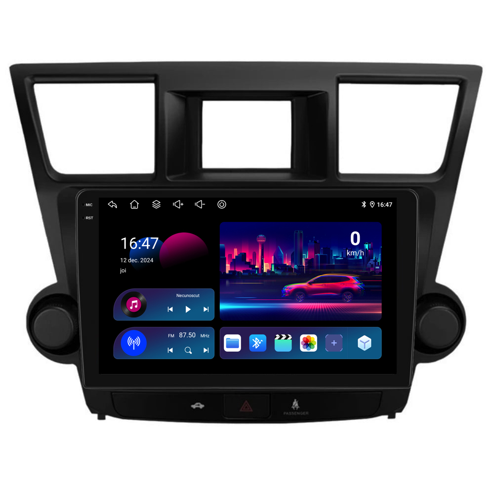 Navigatie dedicata pentru Toyota Highlander (2008-2014). Contine rama adaptoare si toate cablurile necesare pentru instalare. Plug and Play. Radio FM