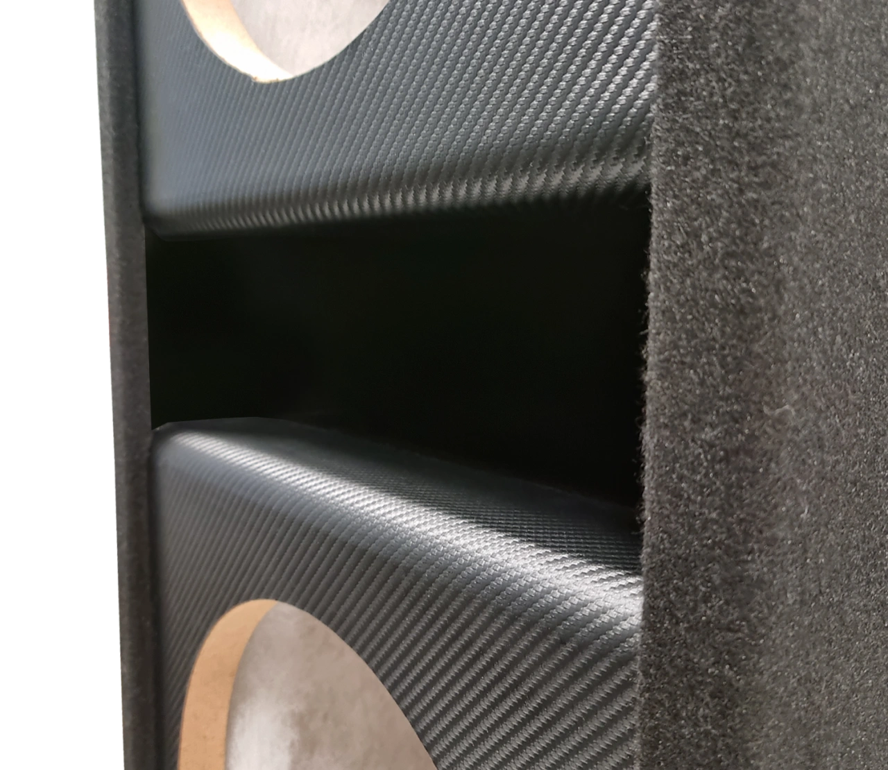 Incinta este tapitata cu mocheta neagra, iar panoul frontal este decorat cu banda cu aspect de fibra de carbon. De asemenea, este echipata cu borne pentru conectarea cablurilor.
