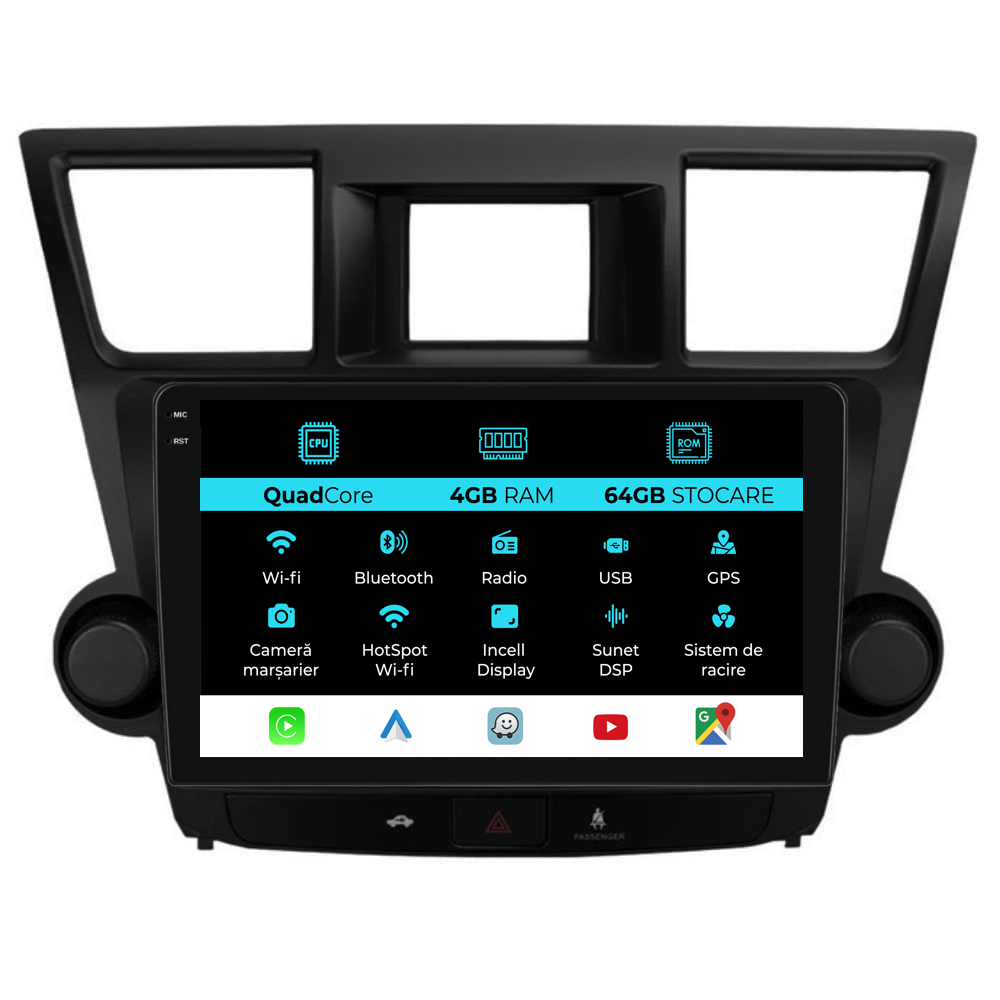 Navigatie Dedicata Toyota Kluger (2008-2014),QuadCore, 10Inch, 4Gb Ram, 64Gb Stocare, Carplay