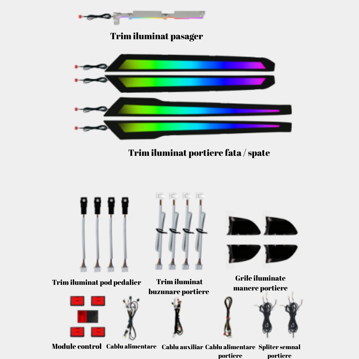 Lumini ambientale dedicate Lexus RX 2015-2022, RGB Acrilice 17 in 1 Dinamice cu efect symphony, Control din Aplicatie Bluetooth