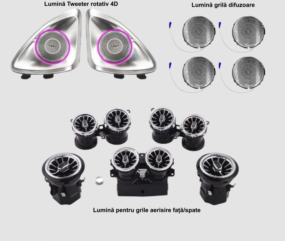 Lumini ambientale dedicate Mercedes-Benz E CLASS W213 2017-2023, RGB Acrilice 14 in 1 Statice cu efect RGB, Control din Aplicatie Bluetooth / Buton + CADOU