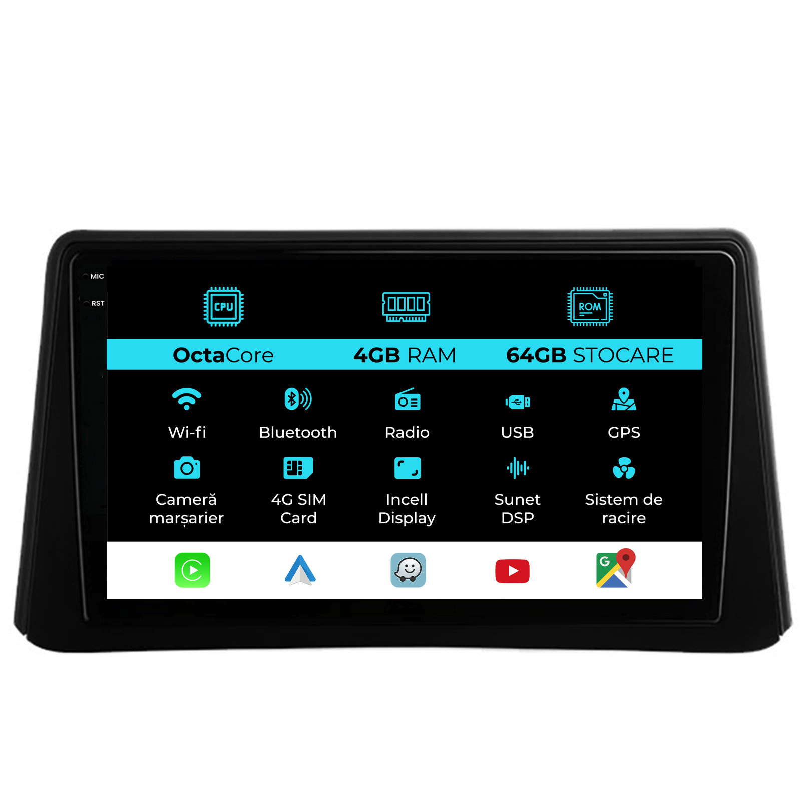 Conectivitate rețea: | 4G, Hotspot telefon, router extern, dongle 3G sau 4G, CarPlay/Android Auto |