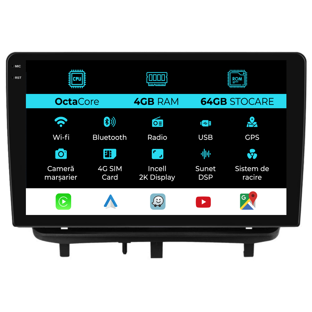 | Conectivitate rețea: | 4G, Hotspot telefon, router extern, dongle 3G sau 4G, CarPlay/Android Auto |