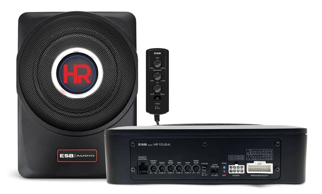 HR 10 US-A este un subwoofer activ, care include un amplificator de 280 W max cu 4 canale (4x70), plus un subwoofer amplificat de 400 W max într-o carcasă de aluminiu. Capabil să crească semnificativ puterea sistemului original al mașinii.
