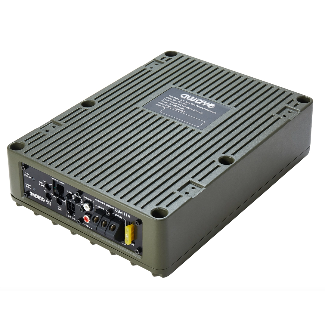 Adauga o dimensiune noua experientei tale audio în masina cu subwoofer-ul activ AWAVE V11 PRO. Conceput pentru a oferi o solutie perfecta în vehiculele cu spatiu limitat, acest subwoofer aduce un "extra kick" în gama de frecventa joasa, oferind un bass puternic si clar. Cu amplificatoare integrate de clasa D, furnizând 100 W RMS de putere, AWAVE V11 PRO livreaza performante remarcabile, transformând cu usurinta puterea amplificatorului într-un sunet bogat si plin de profunzime.