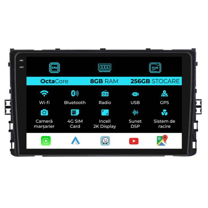 NavStore Navigatie Dedicata Volkswagen T-Cross 2018+, 2K, 8Gb Ram, 256Gb Stocare, Carplay + CADOU