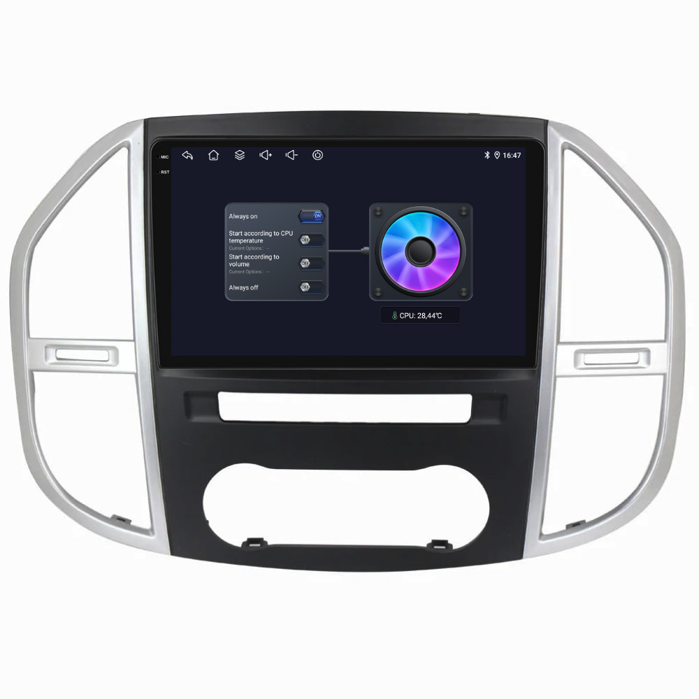 Navigatie dedicata pentru modele Mercedes Vito W447 (2014 - 2021).Contine rama adaptoare si toate cablurile necesare pentru instalare. Plug and Play. Radio FM.