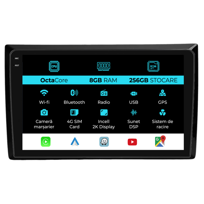 Compatibilitate CarPlay și Android Auto: Da, compatibil cu iOS (CarPlay) și Android (Android Auto)