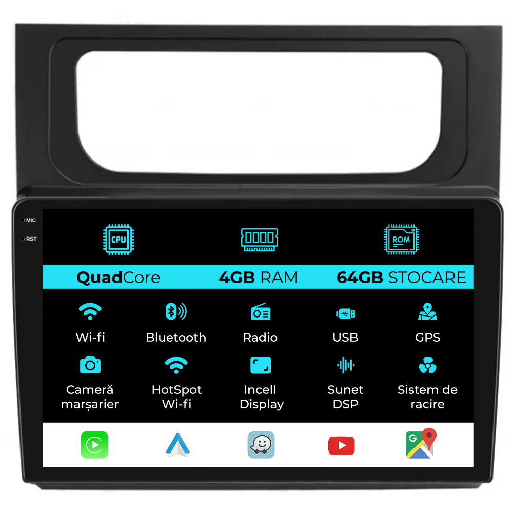 Compatibilitate CarPlay și Android Auto: Da, compatibil cu iOS (CarPlay) și Android (Android Auto)